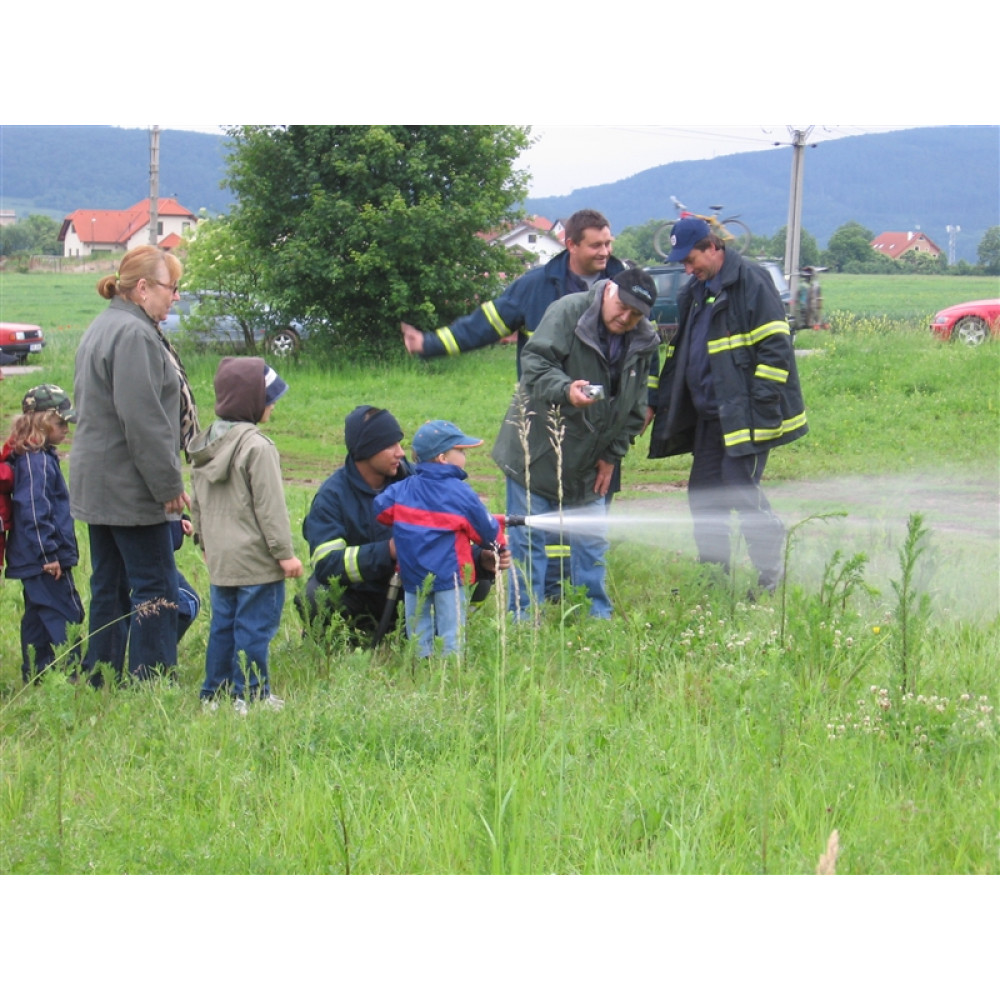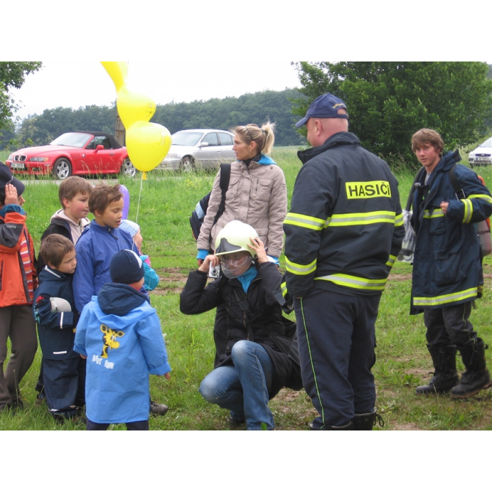 Dnešní odpoledne jsme se zůčastnili dětského dne "Pohádkový les" v Husově ulici na Vráži. Dětem jsme předvedli naší zásahovou techniku a výbavu hasičských vozidel. Každý malý příznivce hasičů si mohl na vlastní kůži vyzkoušet, jak těžké je udržet vysokotlakou proudnici při hašení požárů. Obléknout si dýchací přístroj a přilbu bylo samozřejmé. Jen je škoda, že letošní akci dětem zkazil, téměř neustávající déšť. Pohádkový les