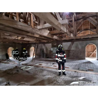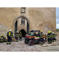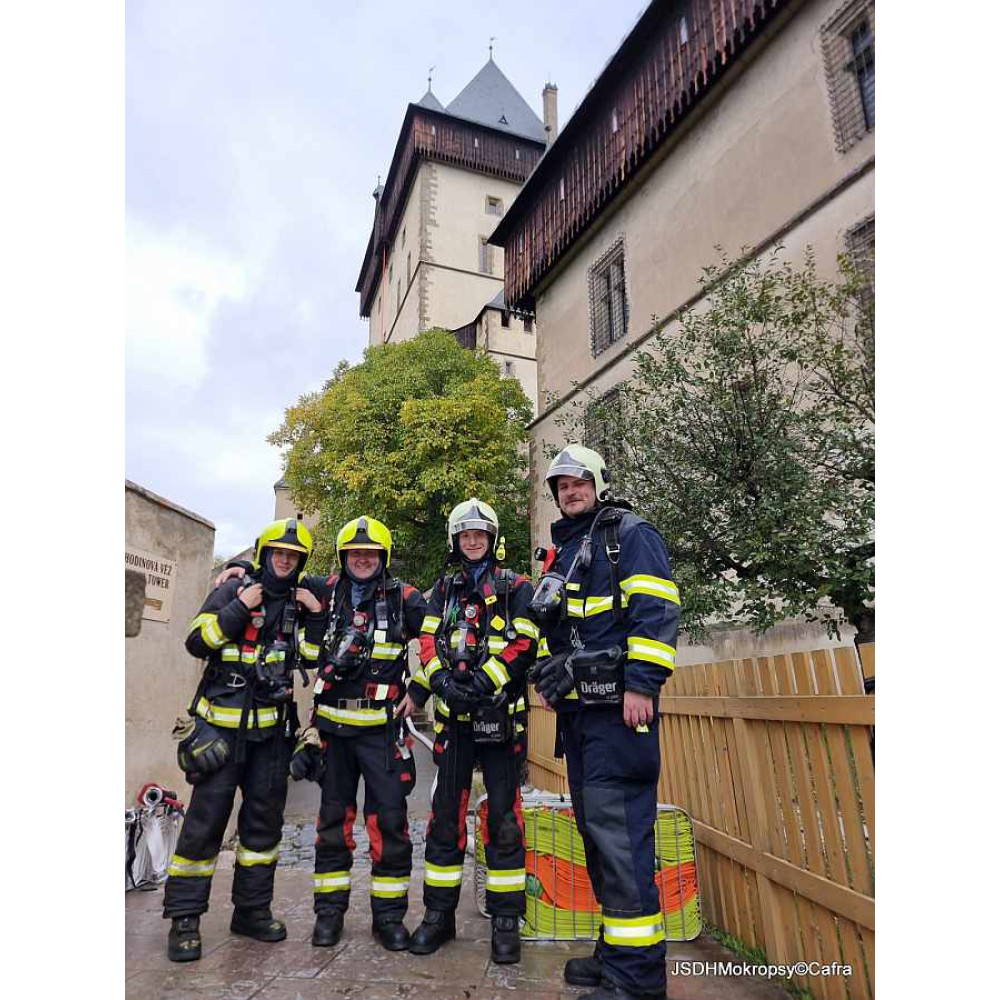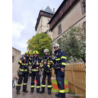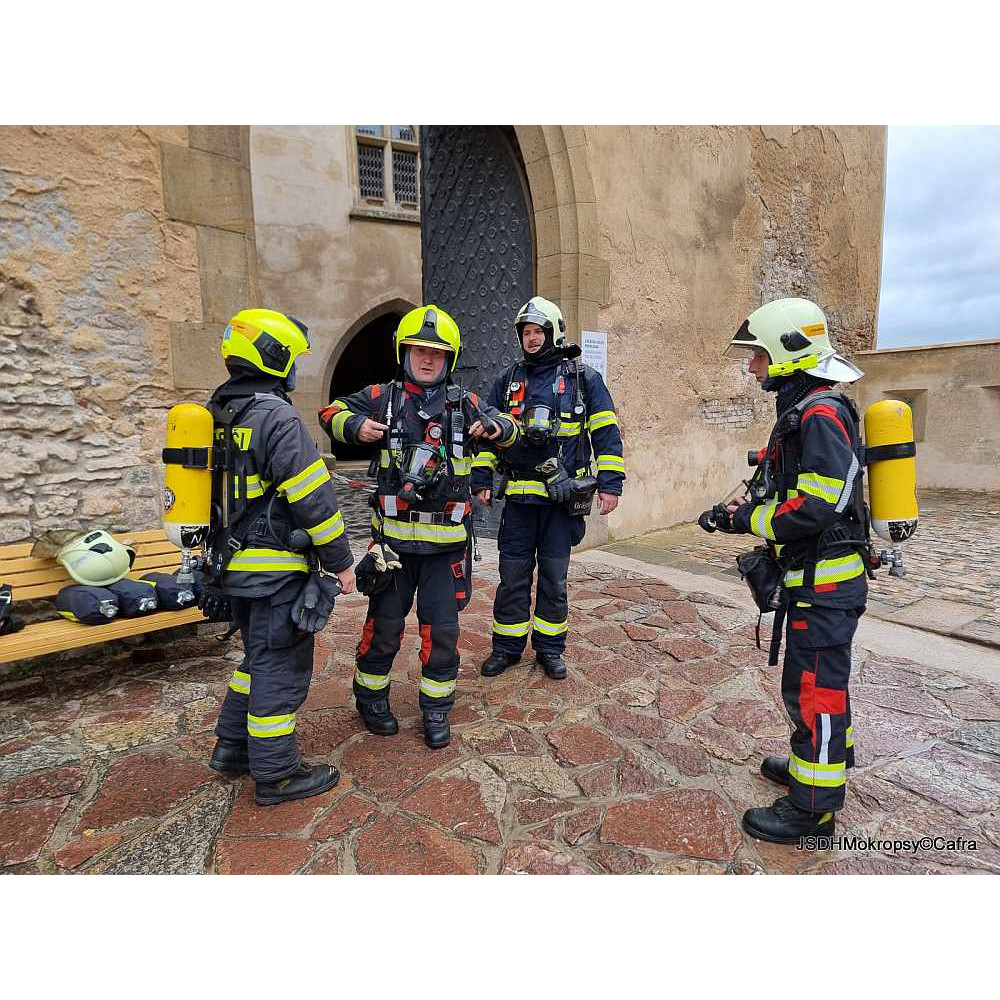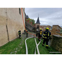 Naštěstí se ale jednalo jen o taktické cvičení, které se opakovalo již poněkolikáté, a prověřilo možnost hasebního zásahu v nejvyšších částech hradu a dálkovou dopravu vody z obce Mořina. Naše jednotka se zúčastnila se dvěma cisternovými automobily a sedmi hasiči.
