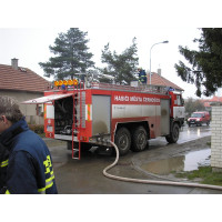 Naše jednotka včera od 7 hodin ráno zasahovala u mohutného požáru tržnice SAPA v Praze 4 Libuši. Po dojezdu na místo požáru byla naše Tatra zařazena do kyvadlové dopravy vody. Na požářiště jsme dovezli 11 cisteren, tj. 90200 litrů vody. Kolem poledne nás velení týlu stáhlo z dopravy vody a zařadilo nás na výtlak do útočných proudů, což znamená, že naše cisterna stála na místě a přes čerpadlo tlačila vodu z přijíždějících cisteren zasahujícím hasičům do proudnic. Naším úkolem bylo zásobování dvou útočných proudů "B" a jednoho žebříku s lafetou.