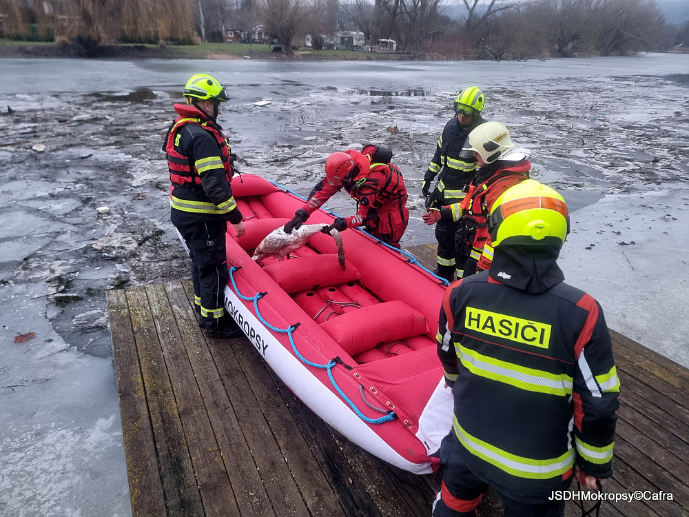 Technická pomoc - záchrana labutě - Černošice, ul. Zd. Lhoty